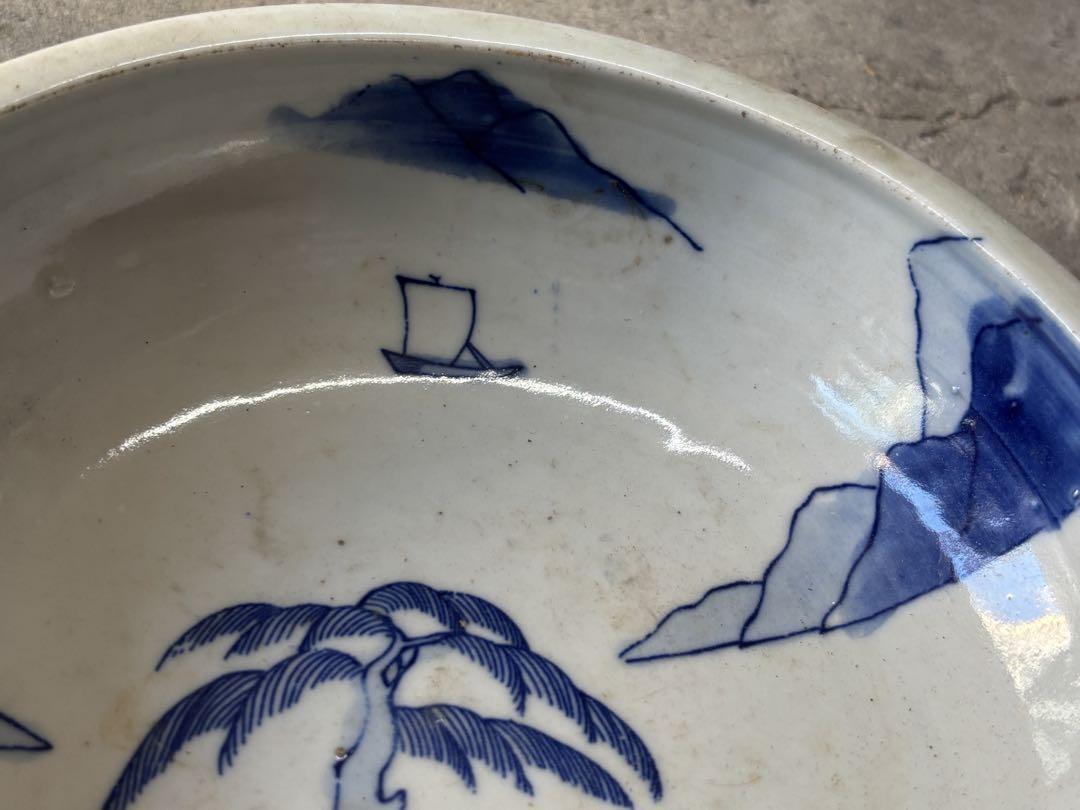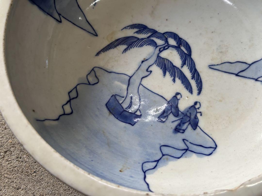 古い器 染付 人物図 和食器 鉢 骨董品 古道具