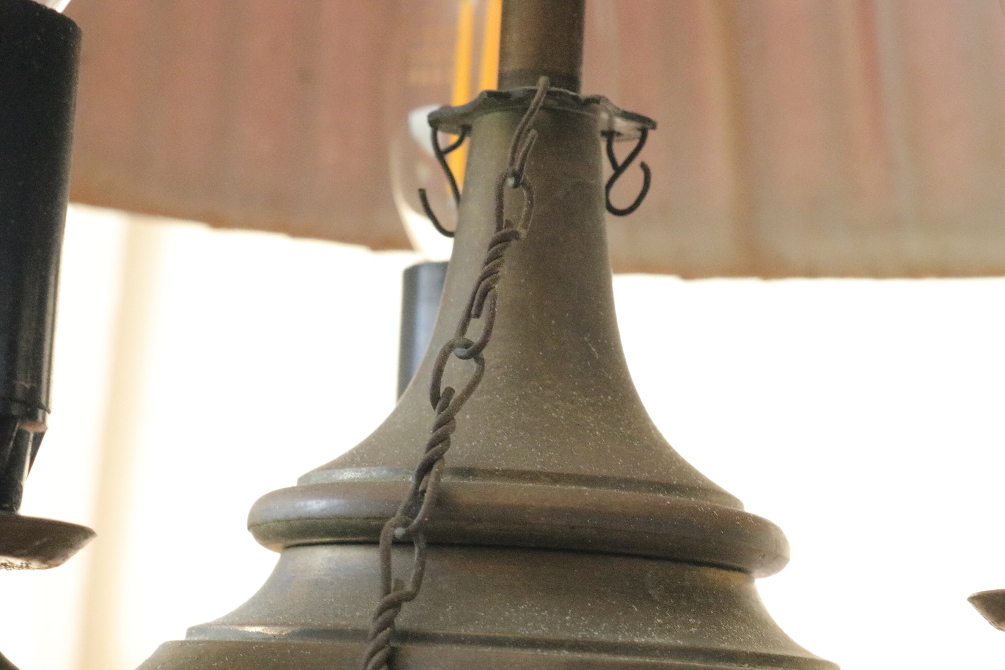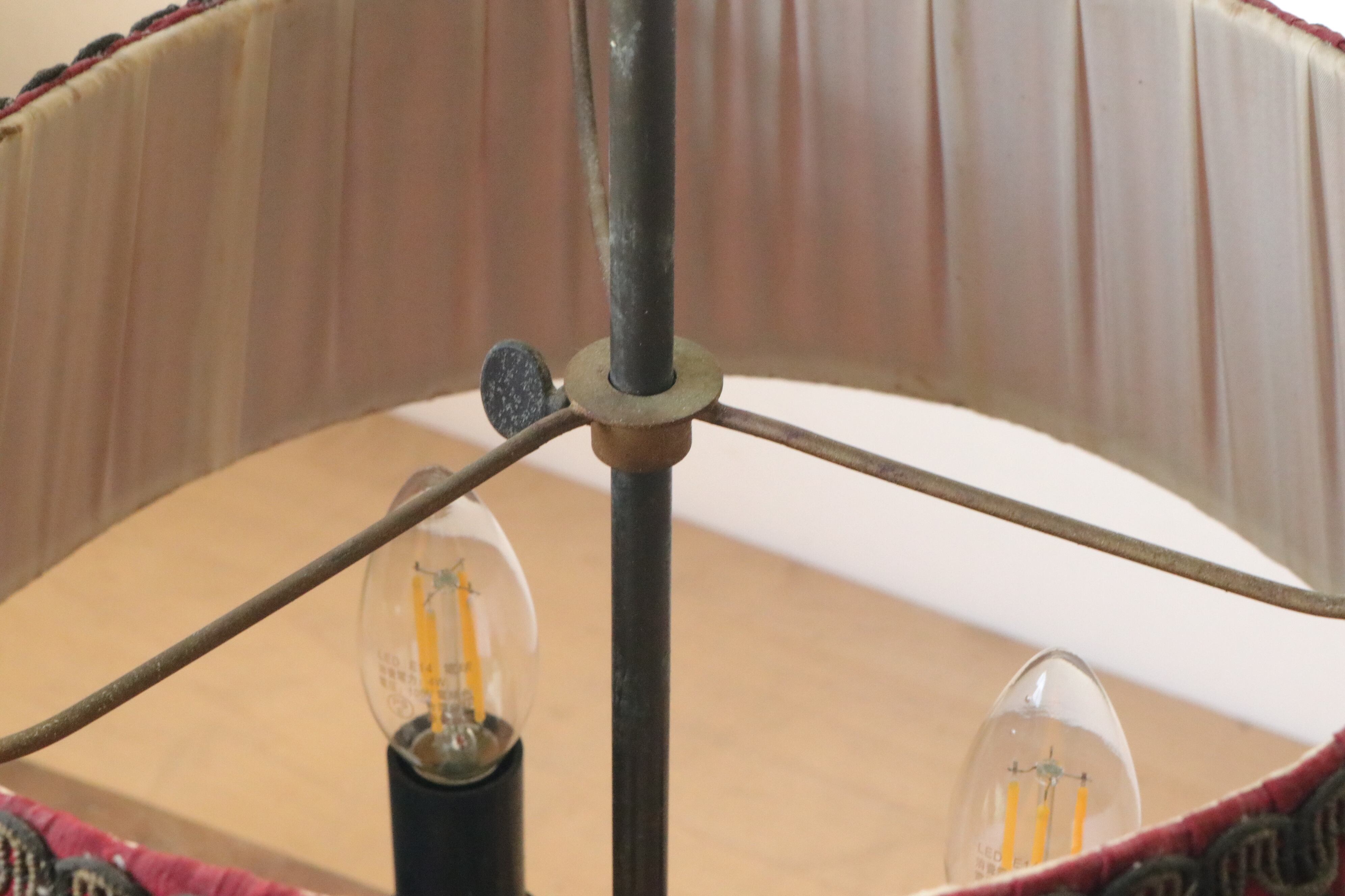 スタンドランプ 真鍮ベース 布シェード 3灯 アンティークランプ