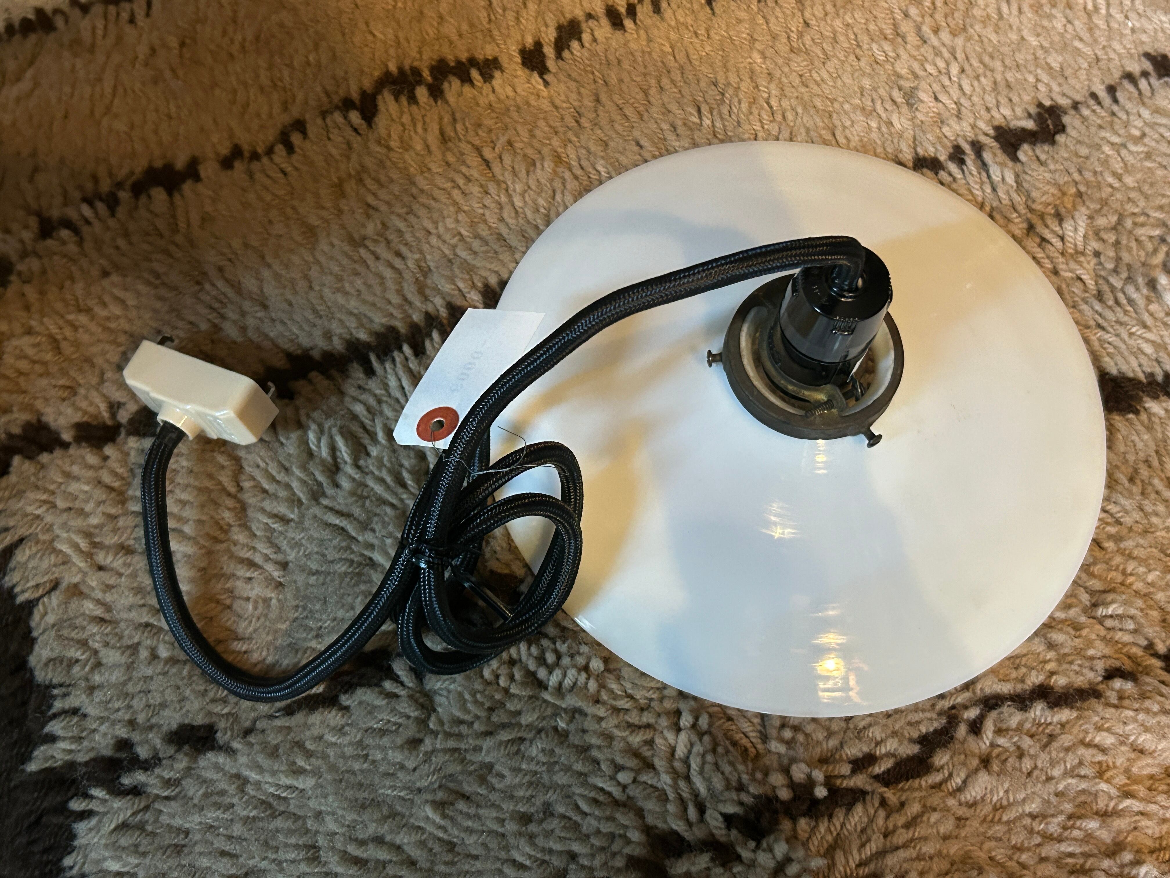 シェードと金具は当時の貴重なヴィンテージ品ですが、配線コードは安全にご使用いただけるよう新品に交換済みです。古いもの特有の美しさと、日常使いできる実用性を兼ね備えた逸品。本物のレトロが持つ、温もりのある空気感をお愉しみください。